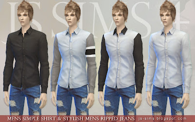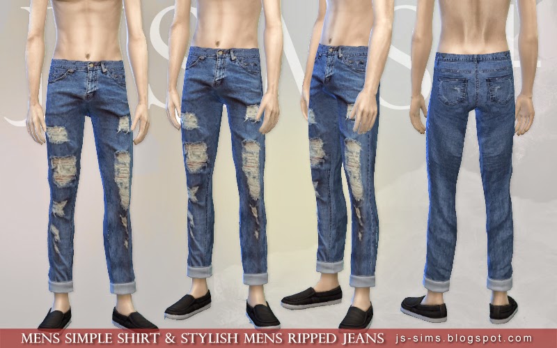 Simple Shirt and Stylish Ripped Jeans for Teen - Elder Males by JS Sims 4