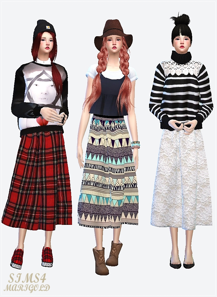 Long Flared Skirts by Sims 4 Marigold