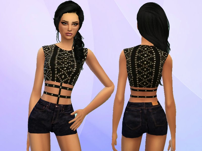 Studded Outfit with Straps and Denim Shorts for Females by XPureSim