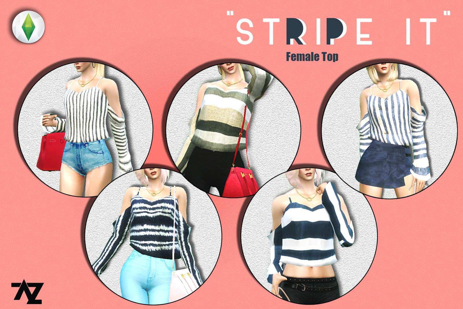 Stripe It Tops for Females by AzBenzo - TS4CCBlog
