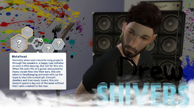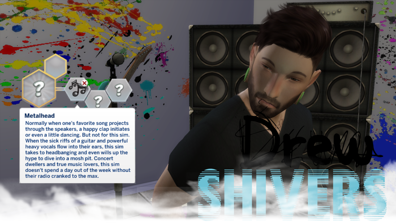 As a metalhead, social skills are increased faintly, primarily friendships. Behavior is expected, meaning the sim will be energized and a music lover. Don’t worry though. Energized isn’t the default mood. There is none so it won’t cover another trait. Just behavior is altered. The guitar skill is learned substantially faster as well as the writing skill. Gotta’ write those heavy tunes yea? A little drink making is included to. Metalheads need less sleep and are always wanting to listen to music, dance, get hyped as well as play guitar and write songs to accompany their skill. Expect a little party-like behavior.