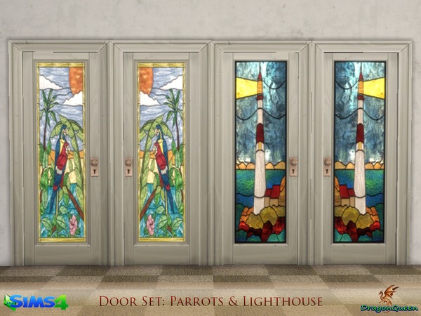 Parrot and Lighthouse Doors by DragonQueen